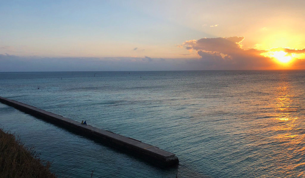 When sunset neared, we took our rods and tackle back to camp, and made our way to the top of the fort. We climbed the spiral staircase at the far end of Fort Jefferson. Then, sat up top to watch the sunset. It wasn’t particularly spectacular, as the clouds blocked much of it.